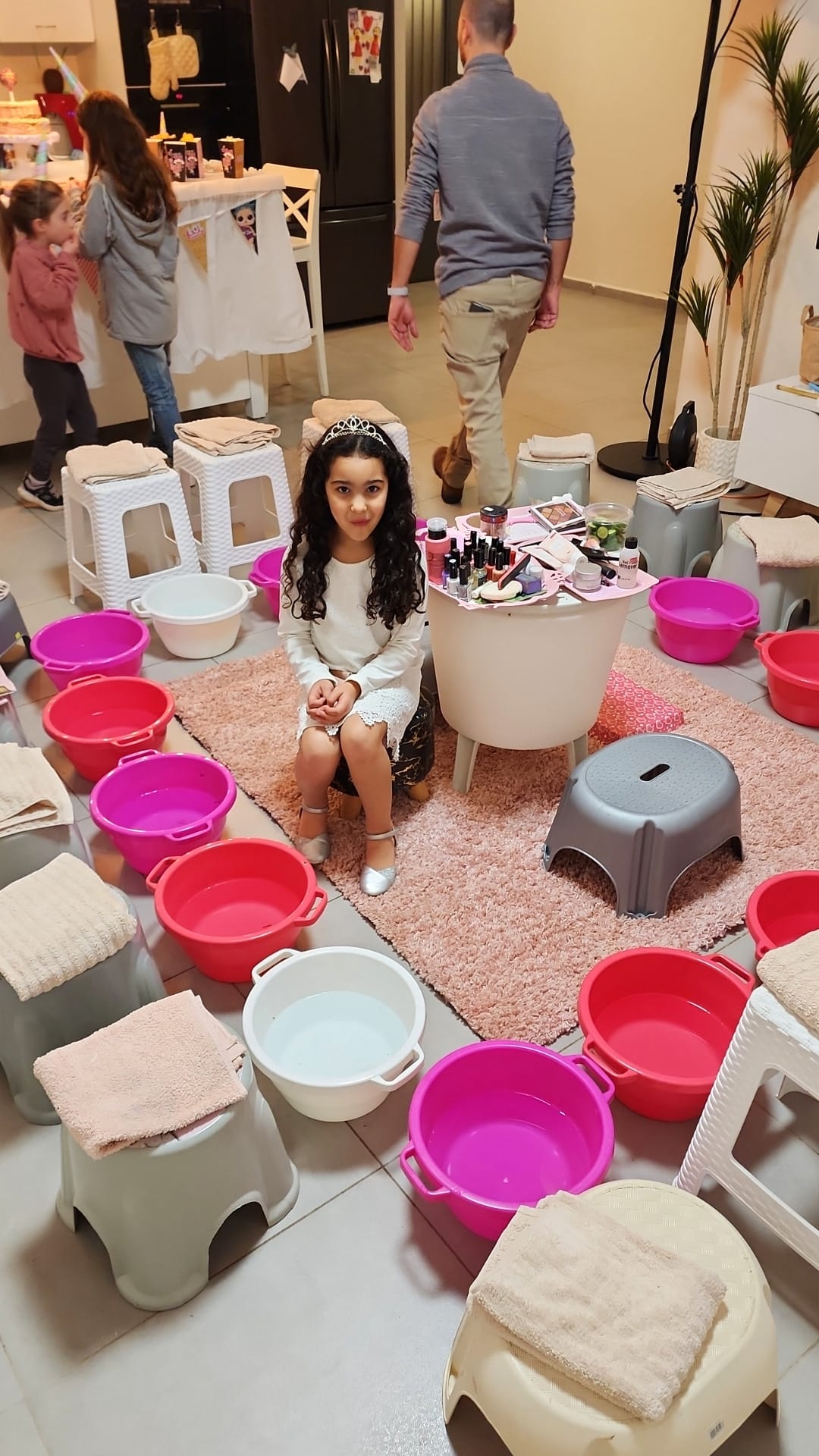 מסיבת ספא שכוללת: גיגיות מים, מגבות, סרטים לשיער לילדות, לקים ידיים רגליים, מסיכה לפנים, קרם פנים, שני משחקים לבחירה. אופציה לצמות בשיער. איפור לילדות. אופציה לשקיות הפתעה ממותגות ומעוצבות.