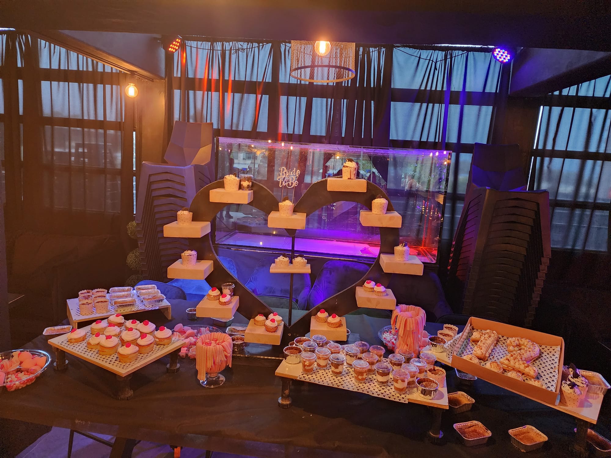 לפי בחירת הלקוח: קאפקייקס, קינוחי כוסות, שולחן שוק חטיפים, עוגות גן מעוצבות, דונאטס, כדורי שוקולד, סברינות ועוד.